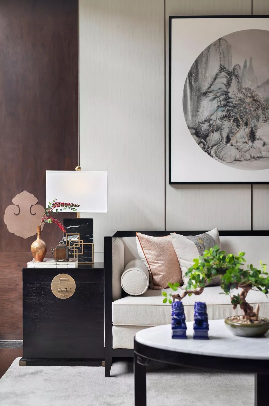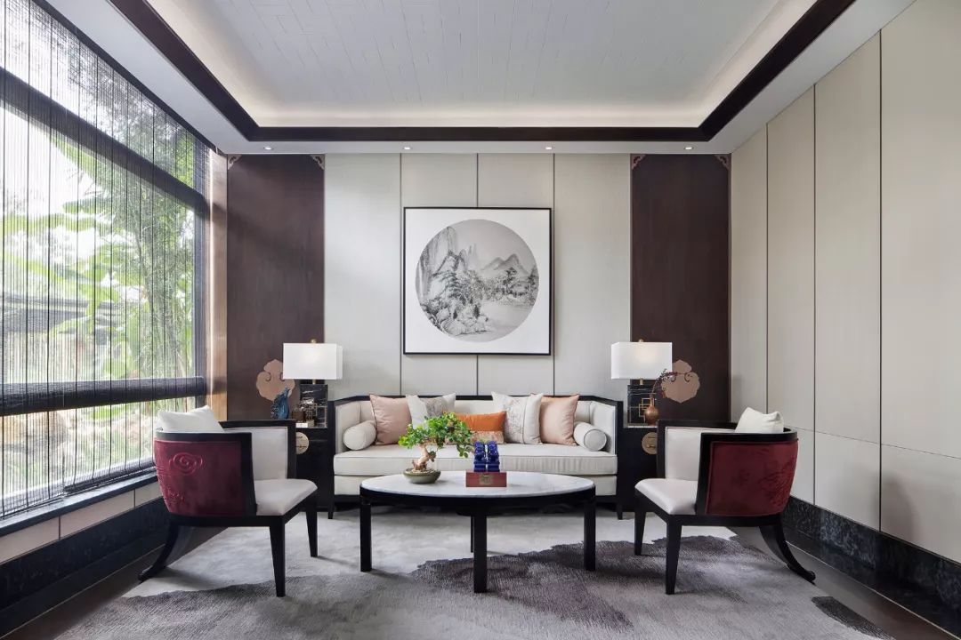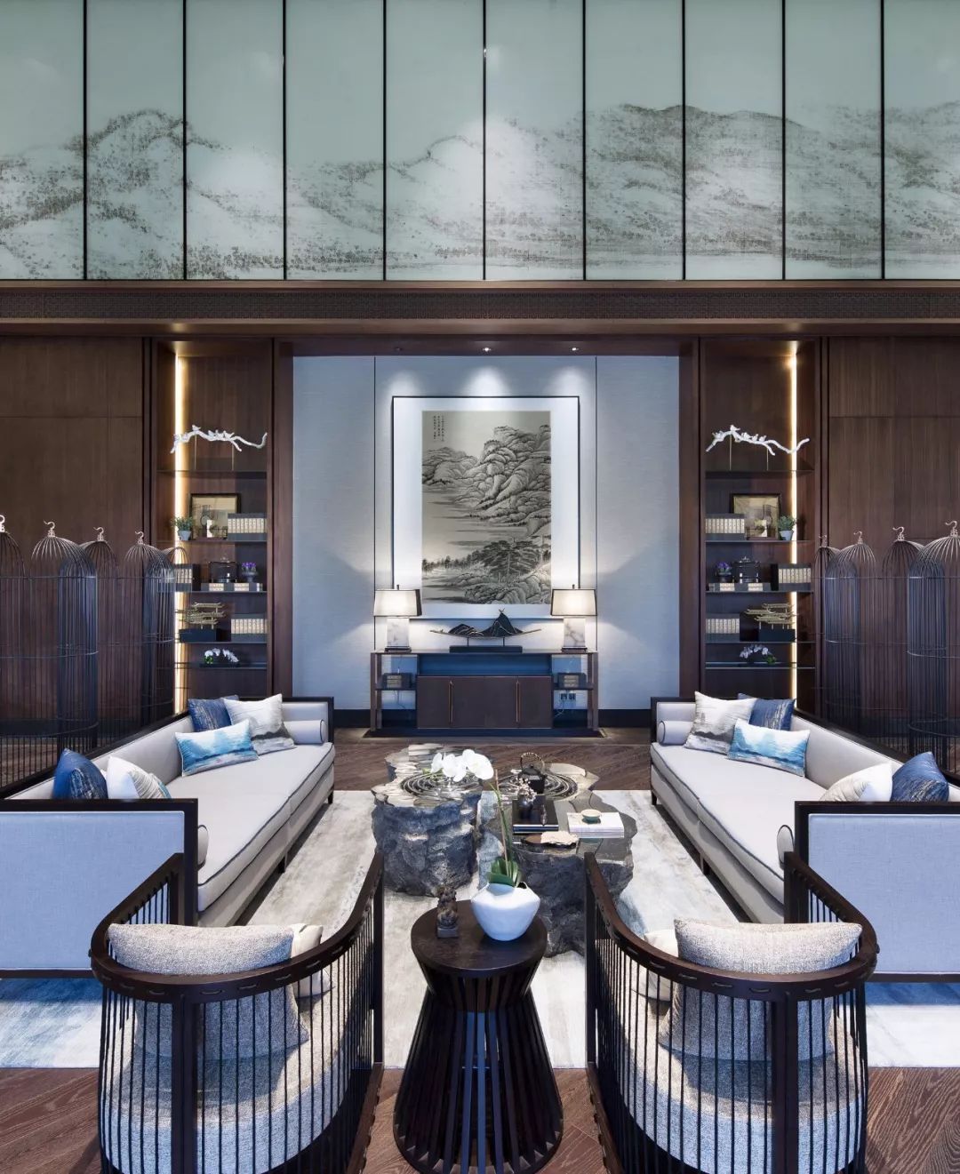 設(shè)計延續(xù)項目售樓會所的濃郁中式格調(diào),于水墨山川畫中發(fā)散思緒,煙霞入詩,云樹成畫,靈動雅麗的自然素韻于空間中流轉(zhuǎn),為生活添一分安然淡雅氣韻。