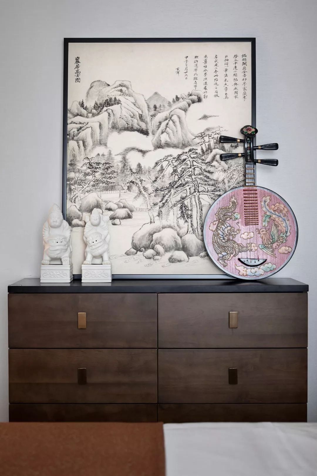 一枝新梅,一棵秀松,設(shè)計師在空間中隨意添染的筆墨,都在為這個中式居所附上一層層文雅氣韻,這里有著閑云野鶴的自在,也有著品茶賞畫的清寧,叫人留戀不已。