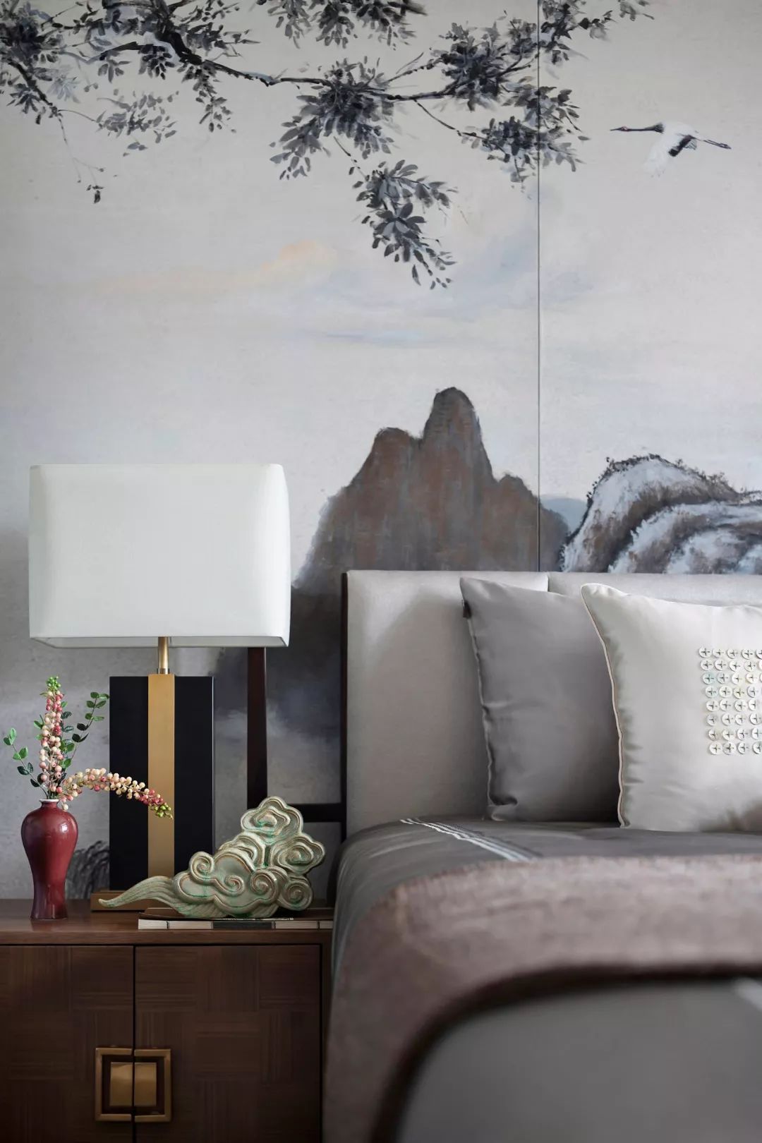 主臥延續(xù)著清冽的水墨韻調(diào),淡淡的墨韻梅香,在床頭濃郁地彌散開來。倚窗而坐,將繁雜之事忘卻腦后片刻,享受煦煦暖陽的沐浴,有著“松筠野鶴任縱橫,遐邇孤云常自在”的靜閟而自在之感。