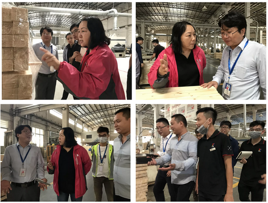 上午9:30—10:30,劉曉紅教授帶領(lǐng)的精益生產(chǎn)改善團(tuán)隊(duì)親臨現(xiàn)場(chǎng),走訪(fǎng)備料車(chē)間的挖補(bǔ)工序、拼板工序、開(kāi)料工序、備料工序等。雙方就現(xiàn)場(chǎng)、現(xiàn)時(shí)、現(xiàn)物進(jìn)行交流與深入探討。
