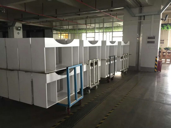 衛(wèi)浴家具企業(yè)生產線基本是機械化涂裝,生產工藝輥涂UV底/輥涂UV面、輥涂UV底/噴涂PU面、水性底/水性面等。家具企業(yè)需要根據自身產品的需求進行生產工藝的量身打造,如展辰在與箭牌衛(wèi)浴的合作中,針對箭牌衛(wèi)浴需求提出了輥涂UV底/輥涂UV面的產品及生產工藝,針對恒潔衛(wèi)浴對產品光澤以及產品表面效果要求較高的需求,提出了輥涂UV底/噴涂PU面的產品和生產工藝等。