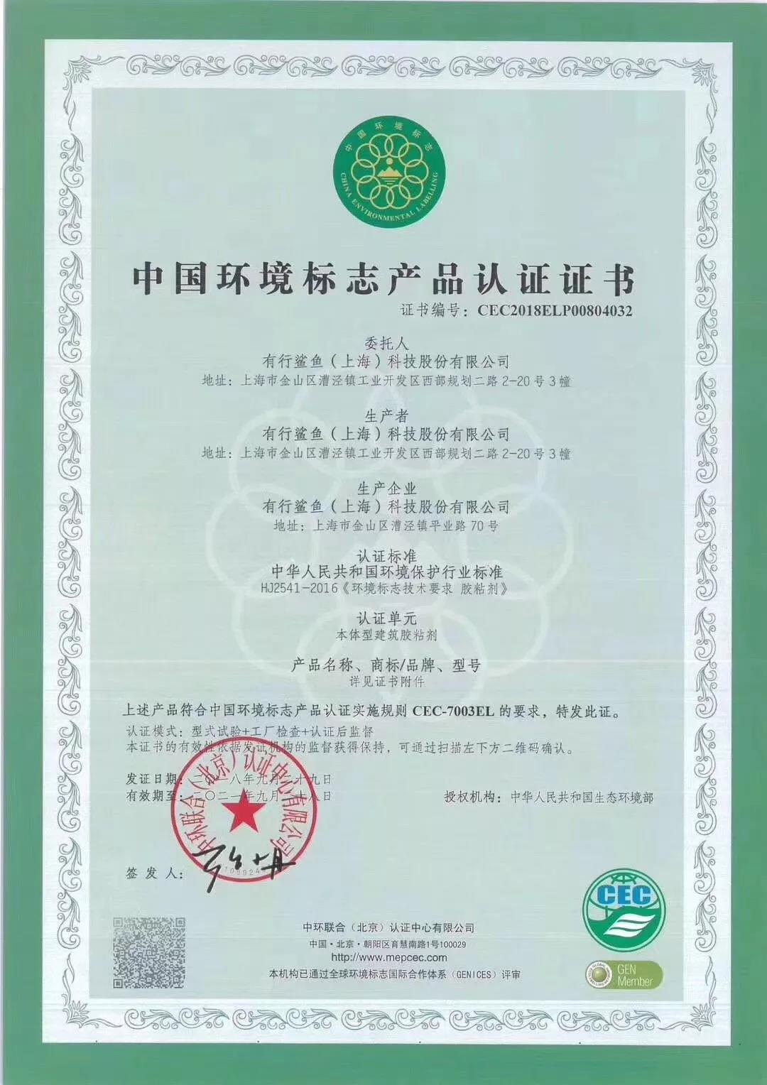 近日,有行鯊魚再獲佳音——企業(yè)取得十環(huán)認(rèn)證資質(zhì)(中國環(huán)境標(biāo)志產(chǎn)品認(rèn)證)。