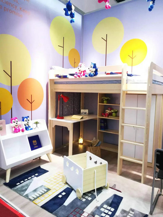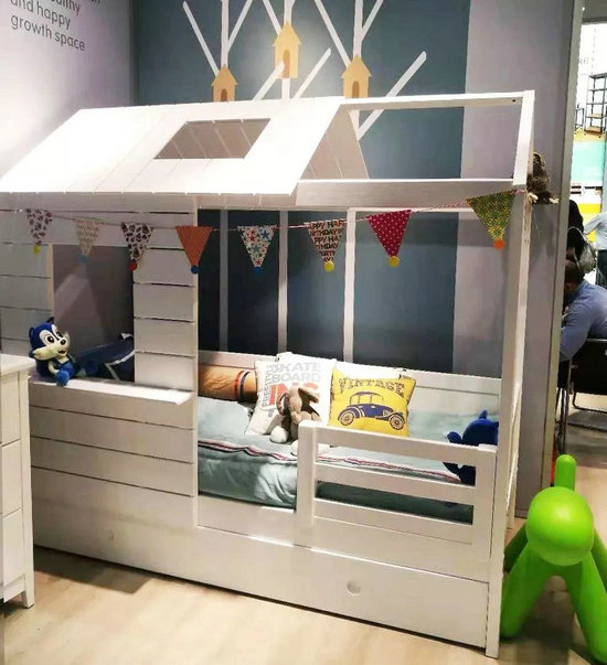 此外,展會還陳列了一年以來最受歡迎的“ Kids Treehouse cabin bed”。一個(gè)造型如同“房子屋”的套房,作為升級款亮相,可見其設(shè)計(jì)新穎、不落俗套。床側(cè)特設(shè)加高護(hù)欄,頂部木質(zhì)加高帳篷,如同孩子自己的小房子,給孩子更多的貼心和關(guān)愛。