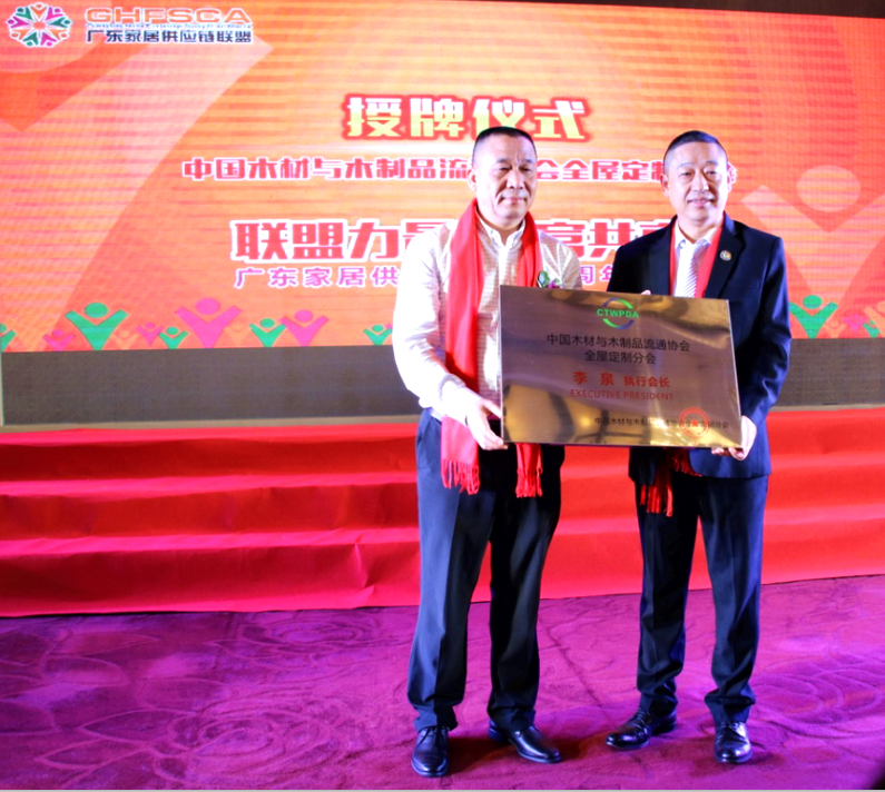 晚宴上還分別給:榮譽主席,執(zhí)行主席、常務副主席,副主席,高級會員,全國工商聯(lián)家具裝飾商會供應鏈委員會授牌儀式和中國木材與木制品流通協(xié)會全屋定制分會舉行了授牌儀式。