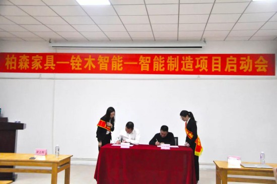 11月24日,是柏森家具在新時代更迭下又一個突破的日子,柏森家居與蘇州銓木智能科技有限公司在柏森惠州工業(yè)園共同啟動“柏森家具智能制造”項目,并簽署戰(zhàn)略合作協(xié)議,以全面實施產(chǎn)品標(biāo)準(zhǔn)化、模塊化、管理信息化、制造智能化為目標(biāo),實現(xiàn)柏森從制造到智造的轉(zhuǎn)型與升級。柏森家具董事長黃志輝、柏森C4生產(chǎn)部經(jīng)理劉興武、蘇州銓木智能科技有限公司總經(jīng)理代彭飛、營銷總監(jiān)陳克明以及柏森制造管理團隊、新工業(yè)園C4生產(chǎn)部全體員工參加了啟動會。