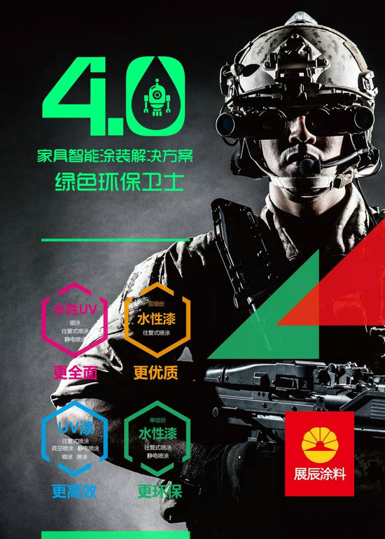 今年3月份,展辰涂料推出“智能涂裝4.0綠色環(huán)保衛(wèi)士”環(huán)保涂裝理念與解決方案,這一理念和應(yīng)用的推出給家具企業(yè)帶來了前所未有的涂裝體驗(yàn),其更全面、更高效、更優(yōu)質(zhì)、更環(huán)保等優(yōu)勢很好地解決了目前家具企業(yè)普遍關(guān)心的環(huán)保、品質(zhì)、效益、效率等問題。