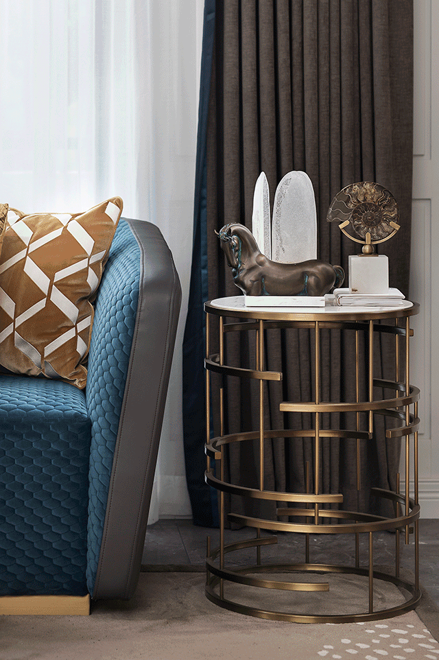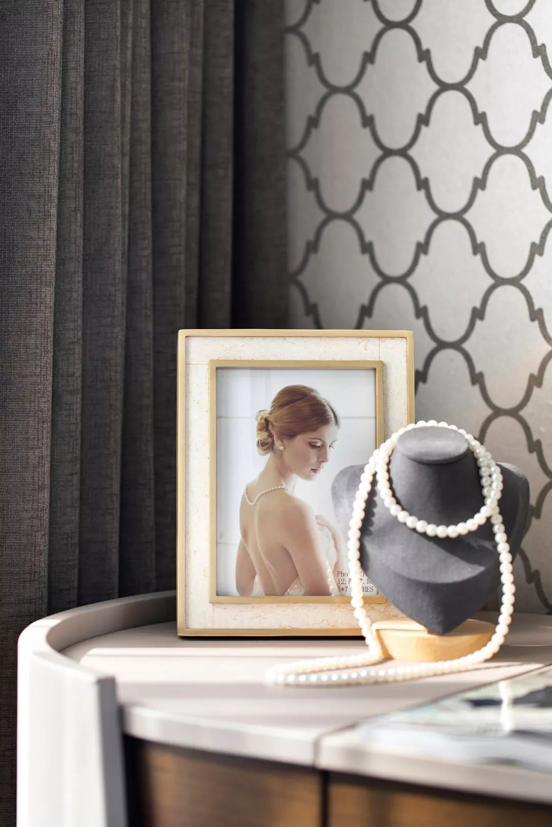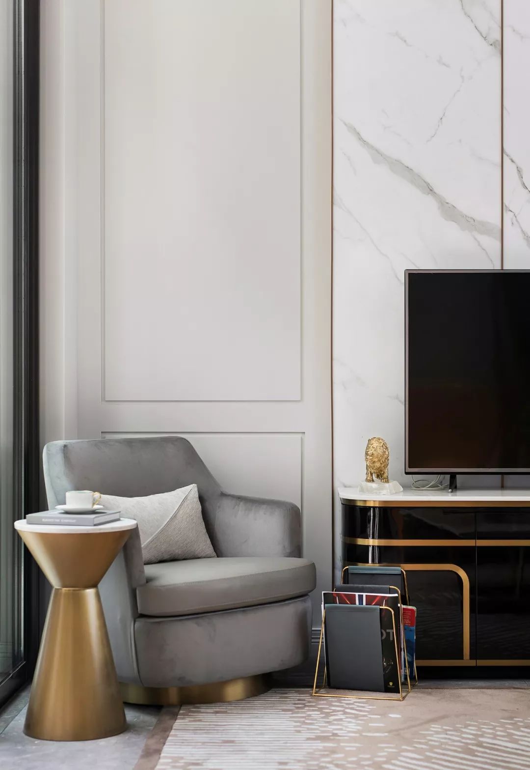 創(chuàng)時(shí)空將對(duì)于家的期待轉(zhuǎn)譯成設(shè)計(jì)的語(yǔ)匯,選用素白色的極簡(jiǎn)法式背景墻、水波紋理石飾面來(lái)定義空間的清雅柔和,雅致的霧霾藍(lán)與格紋輕輕地挑起空間的韻律美感,搭配純白花藝,空間附著著一層恰到好處、不過(guò)于濃郁的浪漫情調(diào)。陽(yáng)光透散過(guò)微透的紗簾為空間染上一抹暖意,令人們不覺(jué)沉溺于韶華中的閑適與安緩。