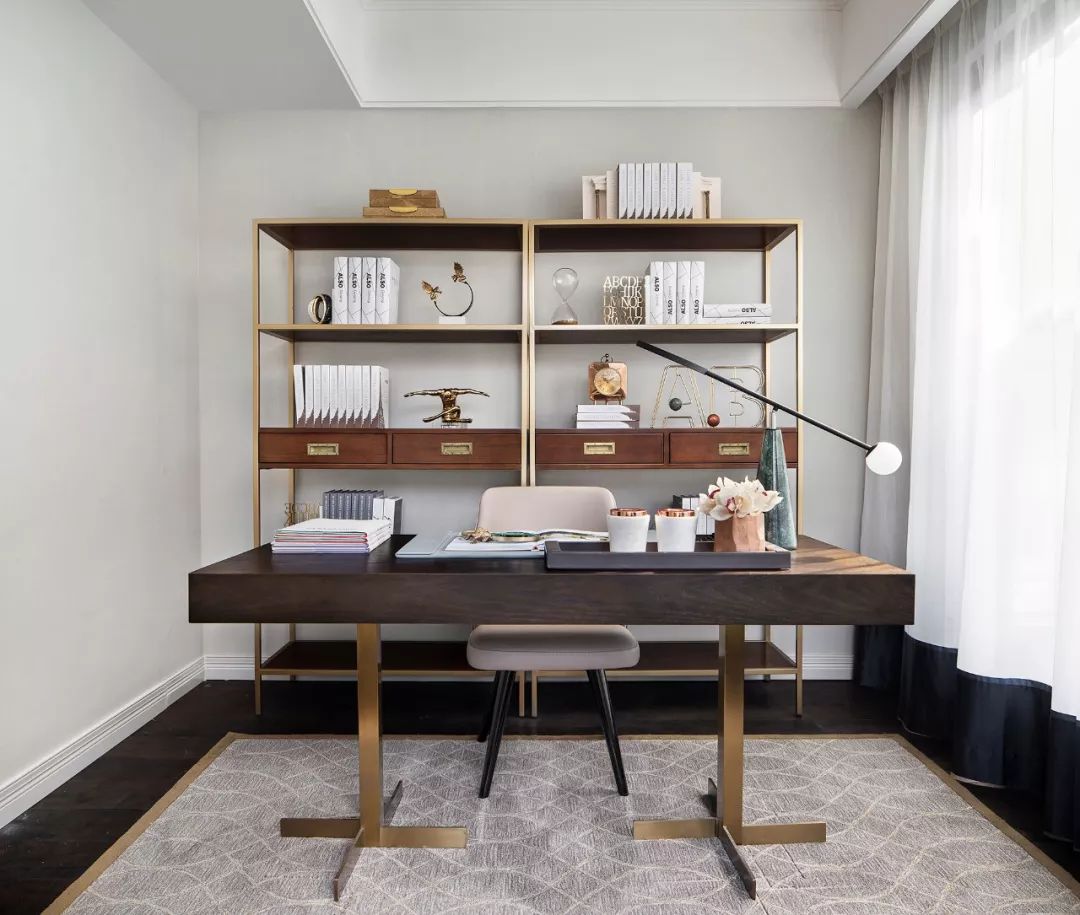 一桌一柜,還有一窗連接自然,造型奇特的燈飾與藝術(shù)品,點(diǎn)綴空間簡(jiǎn)雅與時(shí)尚的藝術(shù)格調(diào)。在這樣簡(jiǎn)凈風(fēng)格的書(shū)房中放松自我,可以隨時(shí)擁抱生活的隨意與閑適。