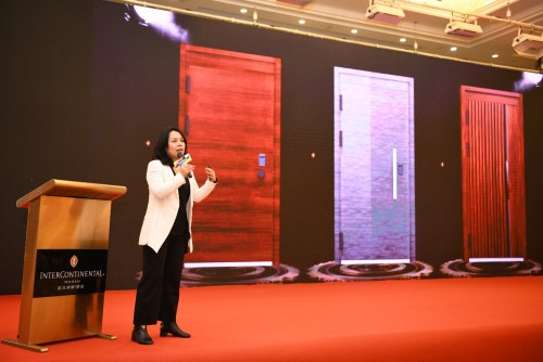 德盾市場部經(jīng)理程潔女士是德盾安全門品牌的產(chǎn)品總設(shè)計師,通過程經(jīng)理圖文并茂的講解,把德盾產(chǎn)品2019年的升級優(yōu)勢分析得很透徹,讓在座的經(jīng)銷商一目了然,對德盾有了更深入的了解。程經(jīng)理站在設(shè)計師的角度,闡述產(chǎn)品的設(shè)計理念,把最新的家居潮流風(fēng)格和對應(yīng)的新品推薦給大家,一下子把大家的心都給嗨起來。