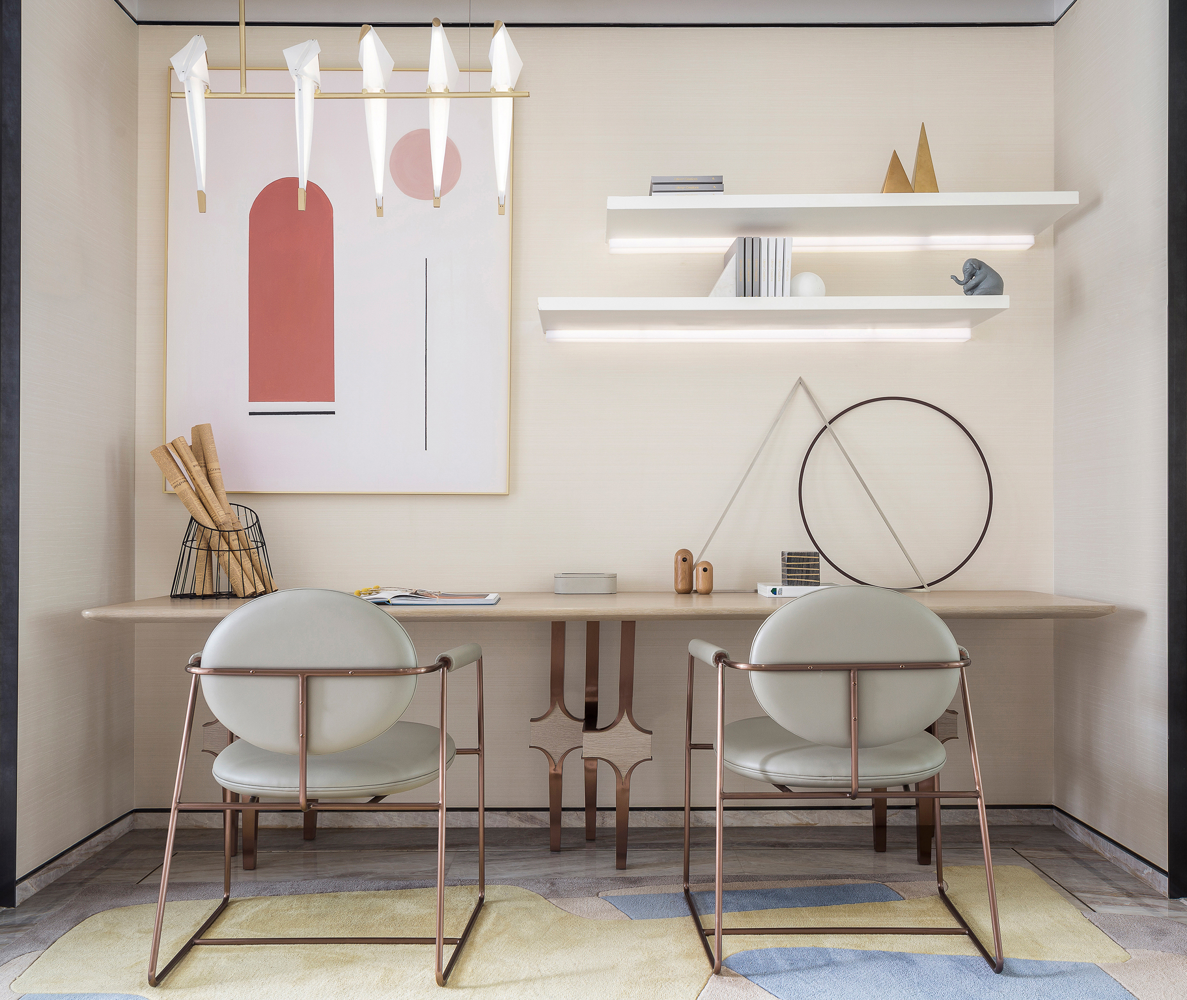 設計師堅信越是簡單的、平凡無奇的顏色,越能詮釋復雜深邃的生活意義。設計利用莫蘭迪配色,回歸視覺觀察的純粹形體世界,追求一種寧靜淡泊的樸實和精神上的自審,重新定義極簡與時尚??臻g的簡潔性、構造的清晰度和材質的純粹度,成為新的空間美學載體。寧靜淡雅,回歸內心,這正是意巢設計所追尋的雕刻時光的美學要義。