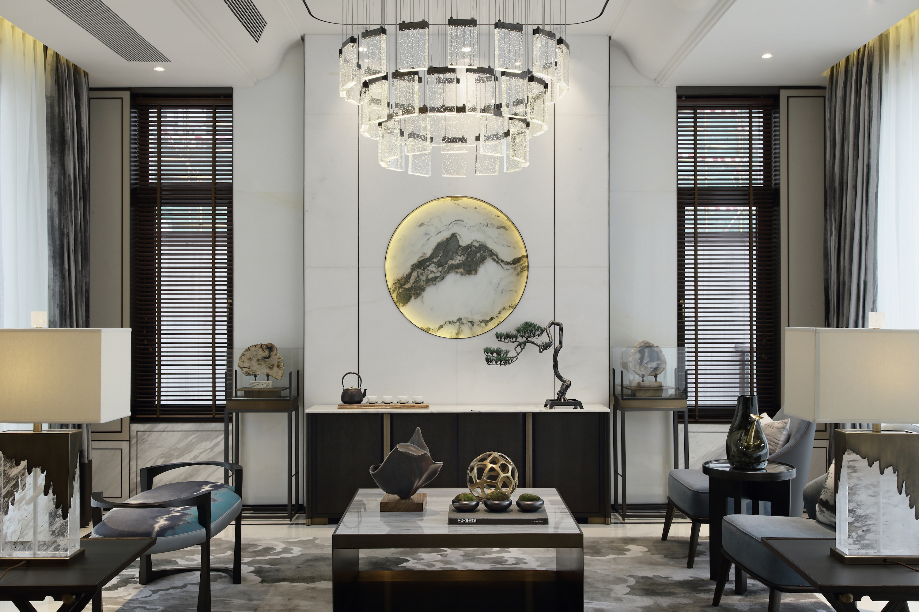 佛山綠島湖柒院墅,傳承新中式風格之精髓,將“大簡至美,東方禪韻”的東方美學思想巧妙地融入到這座嶺南派建筑之中,為現(xiàn)代空間注入凝練唯美的中國古典情韻。