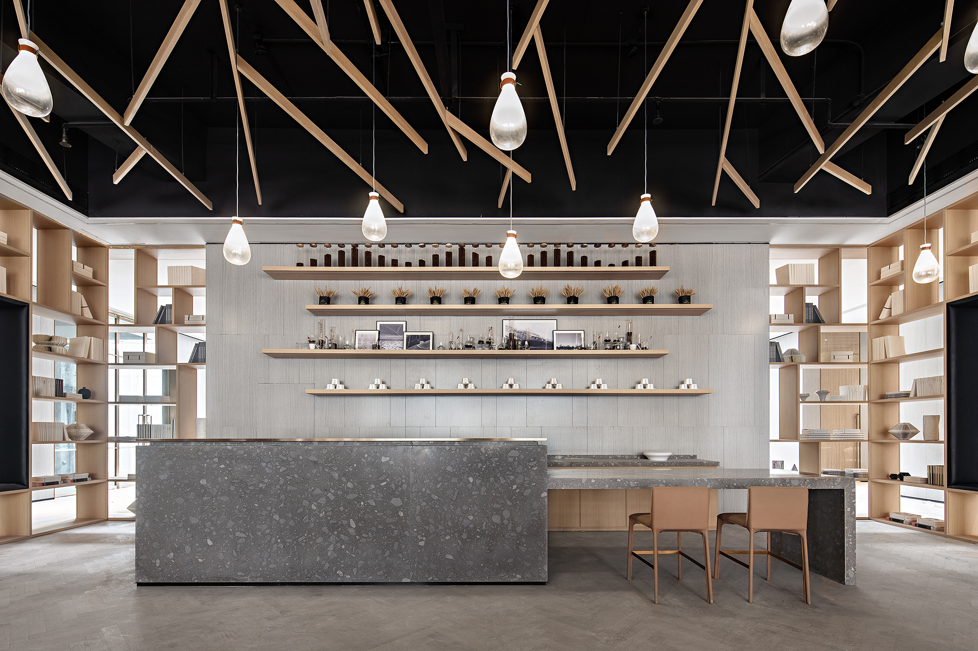 ‘郡邑浮前浦,波瀾動遠空’,這是王維《漢江臨泛》的經典詩句,凝煉的意象和簡潔的語言表達了清靈悠遠的意蘊。讓人看見武漢——光華流轉的長江、鐘靈毓秀的東湖、車水馬龍的碼頭文化。”意巢設計的設計師如是談到設計之源。