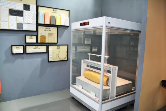 床墊是酒店空間最重要的家具之一。深圳家具研究開(kāi)發(fā)院將床墊關(guān)鍵的質(zhì)量指標(biāo)——耐久性測(cè)試,進(jìn)行了科普性的模擬展示。