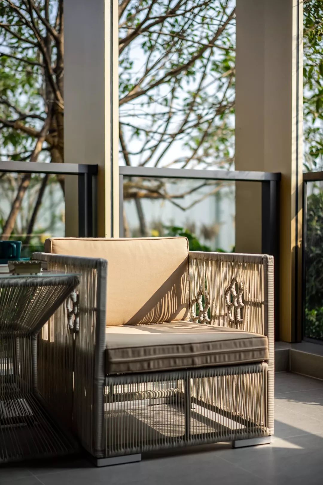 在三亞實地海棠華著別墅,設(shè)計師邦邦將人文精神與現(xiàn)代意識融為一體,老木頭、粗麻、蠟染等質(zhì)樸的材質(zhì)在她的設(shè)計中生發(fā)出不凡的魅力,或莊重深摯,或俏麗明妍,在現(xiàn)代調(diào)性與傳統(tǒng)情韻的交織扭結(jié)中,勾勒了一個夢想之地,實現(xiàn)了一方超越固有體驗、蒙養(yǎng)心靈的空間典范。