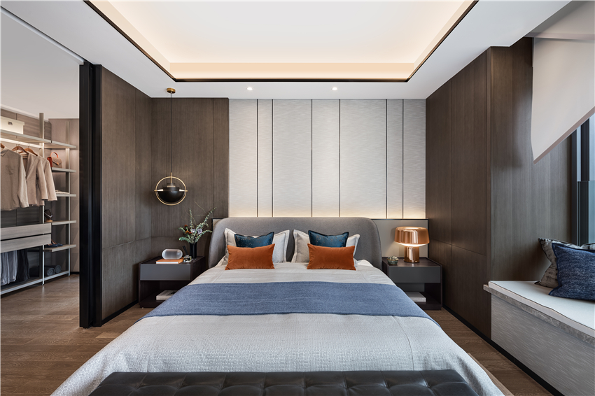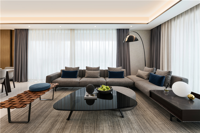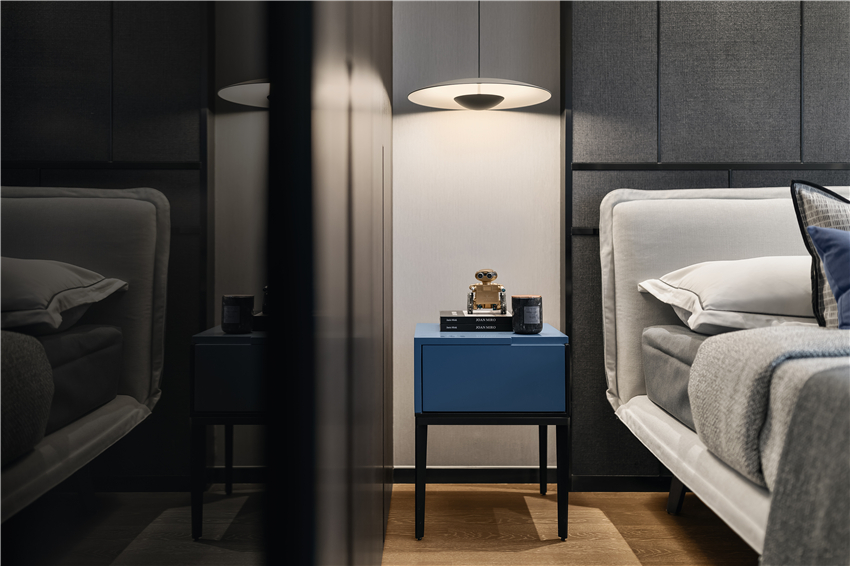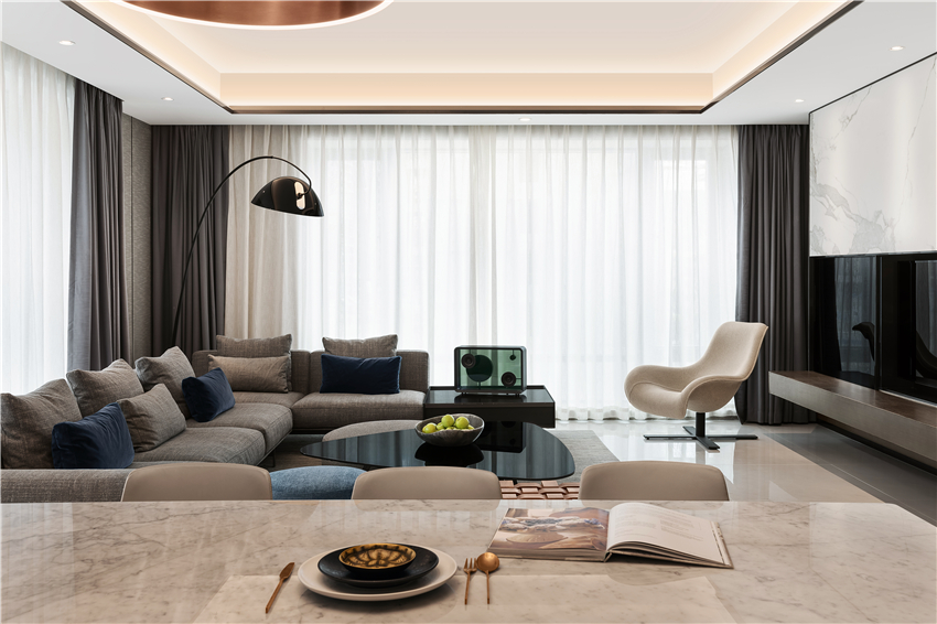 對(duì)于本次獲獎(jiǎng)作品,薩礎(chǔ)燃在采訪中提到:“武漢萬科御璽濱江樣板間項(xiàng)目是我們做的一套全進(jìn)口項(xiàng)目,樣板間主打中高端成功男性家庭,色調(diào)多以灰色調(diào)為主,也在軟墊、抱枕等軟裝飾品上加入了一些跳色呼應(yīng),讓整個(gè)空間呈現(xiàn)出一種商務(wù)輕便、簡單舒適的居家氛圍。”而對(duì)于該項(xiàng)目的整體設(shè)計(jì)構(gòu)思,薩礎(chǔ)燃認(rèn)為樣板間設(shè)計(jì)不應(yīng)只為了展示效果而生硬設(shè)計(jì),而應(yīng)試著去營造一種家的感覺,讓看房者、體驗(yàn)者能夠停留甚至坐下來,仔細(xì)去體味空間所營造的氛圍,觸碰家具的質(zhì)感,讓心真正的放松下來。