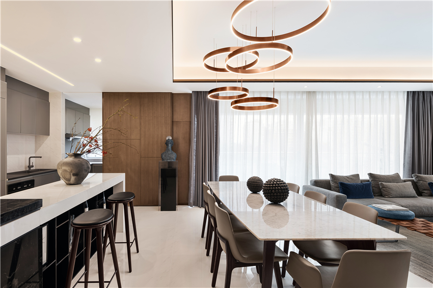 談及設(shè)計(jì)的過程,薩礎(chǔ)燃亦是感慨萬千,因?yàn)轫?xiàng)目時(shí)間緊周期短,但又不想降低項(xiàng)目品質(zhì),所以她們團(tuán)隊(duì)花了大力氣跑遍了成都、上海、香港、深圳等地意大利一線品牌家具展廳,就是為了拿到現(xiàn)貨品質(zhì)家具,以最短的時(shí)間最高的效率去呈現(xiàn)最優(yōu)質(zhì)的項(xiàng)目作品。而對(duì)于本套作品能入圍當(dāng)今中國最具影響力的建筑與室內(nèi)設(shè)計(jì)獎(jiǎng)項(xiàng),也是中國境內(nèi)國際化程度最高的設(shè)計(jì)大獎(jiǎng)——IDEA-TOPS艾特獎(jiǎng)深圳賽區(qū)陳設(shè)藝術(shù)(軟裝)優(yōu)秀獎(jiǎng),薩礎(chǔ)燃認(rèn)為這是對(duì)她們團(tuán)隊(duì)辛苦努力最好的褒獎(jiǎng),以后也會(huì)更加積極努力爭取做出更好的作品,拿到更好的成績榮譽(yù)。