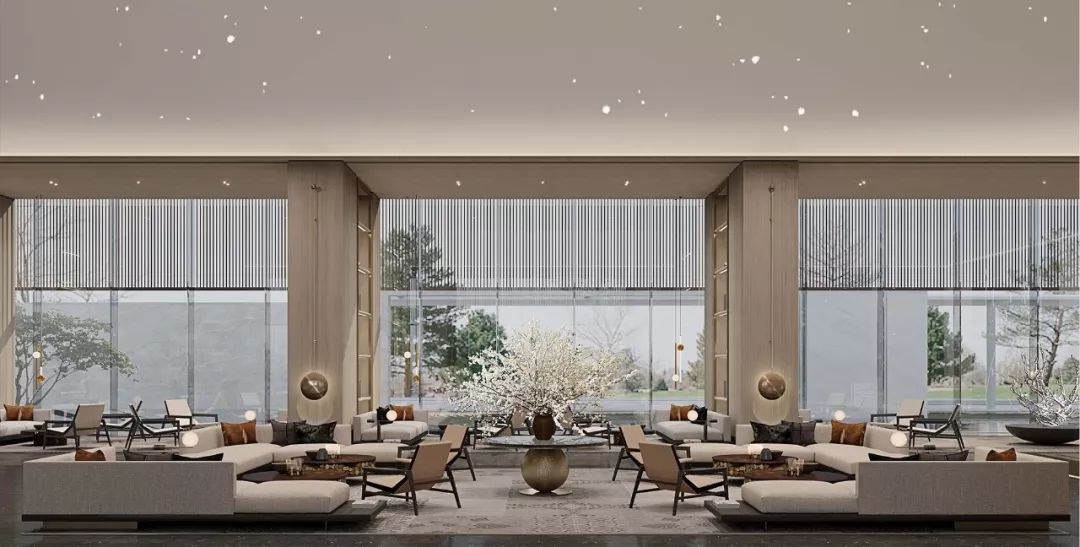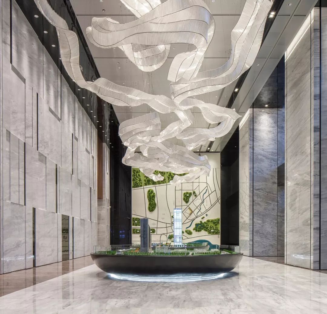 在派尚設(shè)計的筆下,本案以“時光之鑰”為主題,凝煉出傳統(tǒng)五行之道與宇宙自然的哲美藝識,擇用抽象藝術(shù)手法轉(zhuǎn)譯表達,將卓越美學的意境融入室內(nèi)設(shè)計與軟裝設(shè)計中,營造了一個身居繁華、心歸自然的城市山水相逢處體驗場景,開啟成都人對慢生活的詩意與品質(zhì)追求。