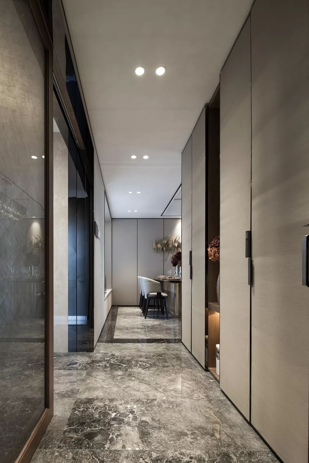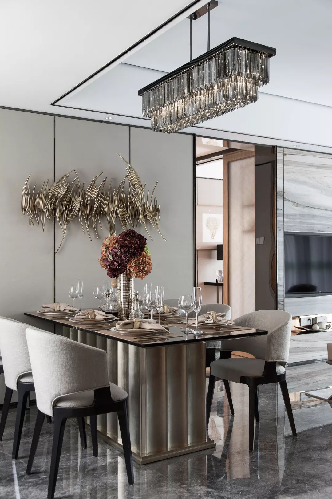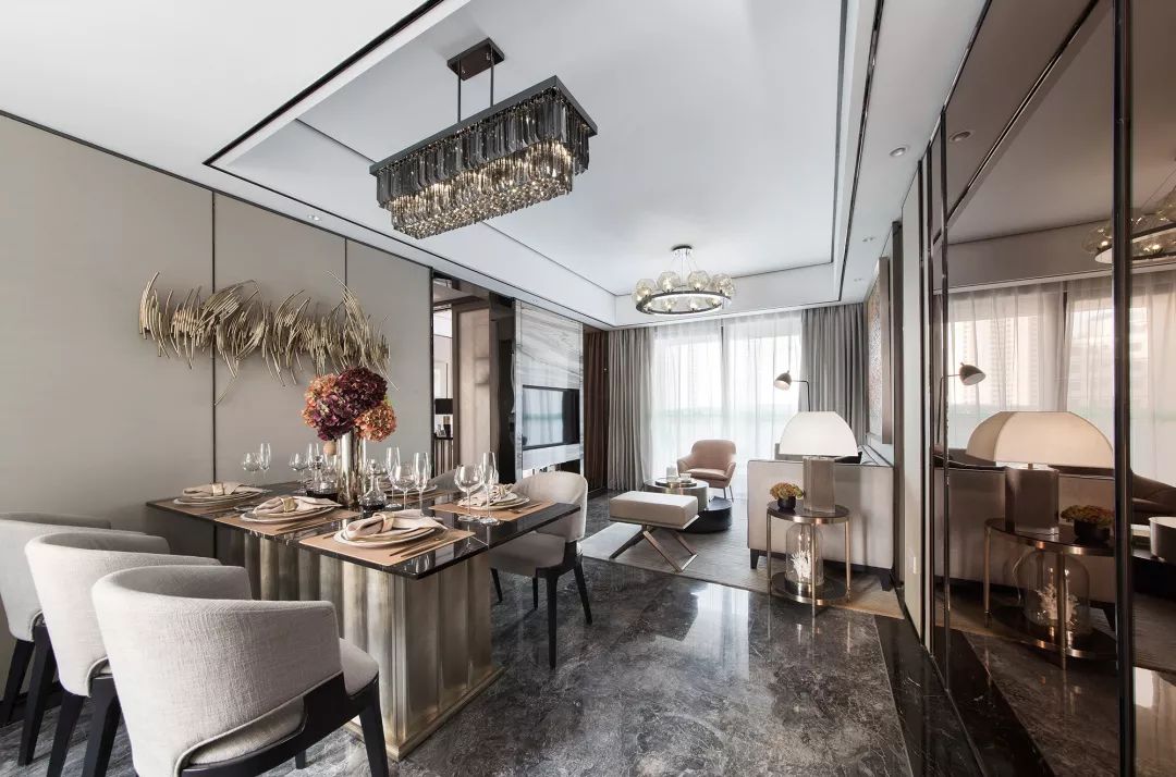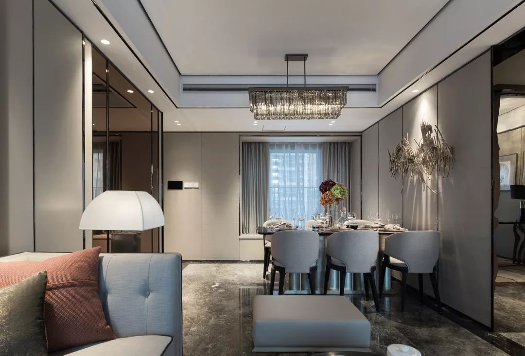 本案設(shè)計(jì)旨在空間表達(dá),設(shè)計(jì)師在空間運(yùn)用上下足了功夫,把原有建筑條件充分利用,空間流線合理,收納功能強(qiáng)大,結(jié)合現(xiàn)代風(fēng)格在空間上的應(yīng)用,空間干凈通透,客廳與餐廳渾然一體,線條簡練,材料的合理搭配更使空間層次提升,鏡面的運(yùn)用對空間的開闊起到了關(guān)鍵性作用,獨(dú)特的裝飾手法,讓人感到?jīng)]有拘束和束縛,這樣的房子不僅住的舒適,并追求個性。