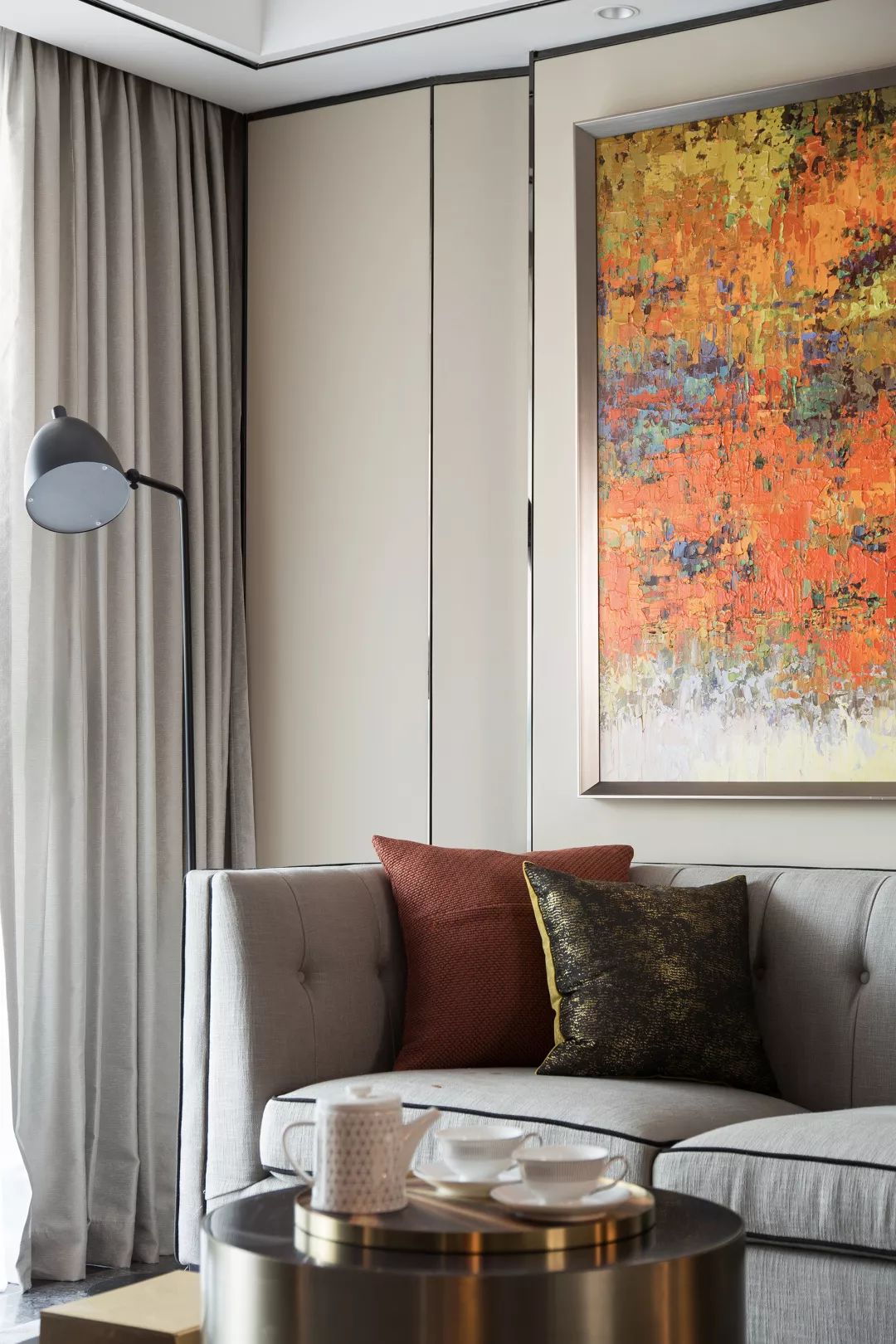 整個設(shè)計(jì)簡潔自然,色彩和諧,暖灰色系使空間既具備家的溫馨又具備時尚感,功能與美色共享。