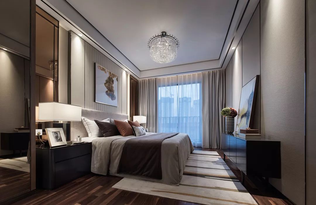 臥室給人以溫馨的感覺,色彩簡潔明快,暖灰色依然是房間的主題色,點(diǎn)綴以其它簡潔明快的色調(diào),布面材質(zhì)的應(yīng)用給予整個空間以溫度,整個臥室簡潔而溫馨,功能齊全,空間利用獨(dú)特。