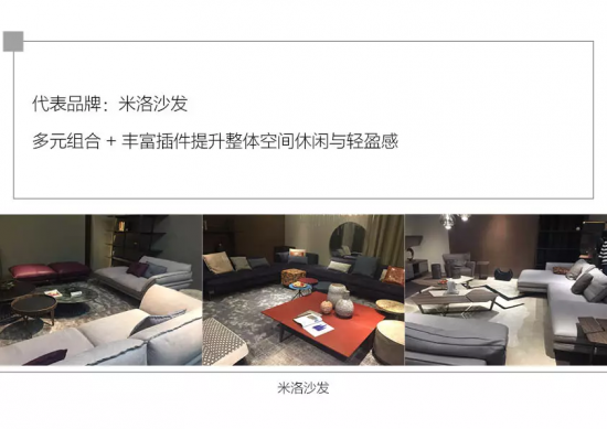 同時(shí),年輕消費(fèi)者對(duì)于沙發(fā)的組合需求更靈活,常見的轉(zhuǎn)角位與直排位已經(jīng)略顯傳統(tǒng),展會(huì)上沙發(fā)的組合形式明顯更加多元,主要表現(xiàn)為: