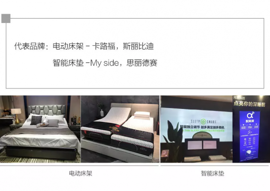 電動(dòng)床是指通過(guò)機(jī)械方式對(duì)頭、腿部等部位進(jìn)行升降調(diào)節(jié),以實(shí)現(xiàn)休閑、娛樂、睡眠等多種場(chǎng)景的臥姿切換。索菲利爾等品牌曾是這類產(chǎn)品的開創(chuàng)者,但今年展會(huì)則幾乎所有的床墊品牌都擁有了幾款電動(dòng)床產(chǎn)品,說(shuō)明這一細(xì)分市場(chǎng)正逐步走向成熟。