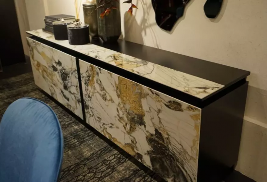 olivieri和lago創(chuàng)新性地使用玻璃材質模仿大理石,并演繹了多種大理石紋路,在視覺的美感和觸覺的質感上都完美實現(xiàn)了“以假亂真”的效果。