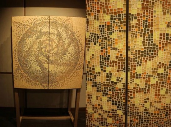 與此同時,國外品牌在木構件表面的裝飾手法上也可謂獨具匠心,在木材的表面做文章,將產(chǎn)品價值體現(xiàn)得淋漓盡致,并且每一家都具有完全不同的創(chuàng)意方式。annibale colombo在柜體的門板上用亞克力材質以類似馬賽克的形式拼接成一幅栩栩如生的花朵圖案,boffi在柜體門板的表面采用人工手繪使得五彩斑斕的孔雀在此開屏。