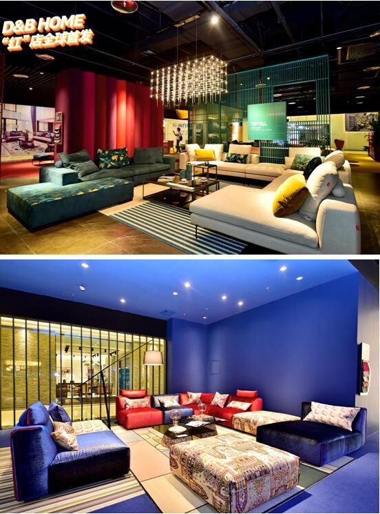 帝標(biāo)D&B HOME “紅”店位于成都富森美“拎包入住”館的二樓,1400平方米的超大店面、時(shí)尚現(xiàn)代的設(shè)計(jì)、跳躍流動(dòng)的絢麗色彩,讓這個(gè)定位于“網(wǎng)紅”的店在一眾大店中格外搶眼。
