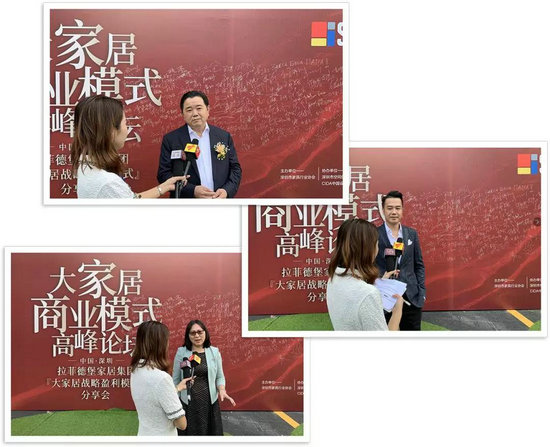 △深圳市家具行業(yè)協(xié)會(huì)會(huì)長 尤國忠先生,RWD黃志達(dá)設(shè)計(jì)創(chuàng)始人及董事長、知名建筑、室內(nèi)及產(chǎn)品設(shè)計(jì)師黃志達(dá)先生,廣州建眾咨詢有限公司董事長侯定文女士接受來自廣東衛(wèi)視及深圳衛(wèi)視的采訪,暢談大家居模式的意義。