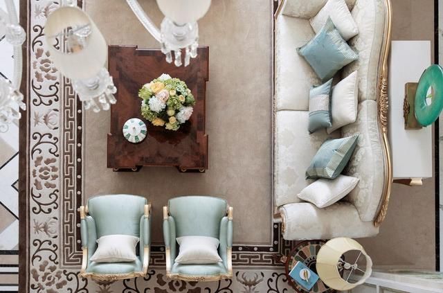 這不是一種程式化的風(fēng)格,而是內(nèi)心繾綣的浪漫表達(dá),在中空挑高的會客廳設(shè)計中,點綴以澄澈、清新的薄荷綠布藝沙發(fā),烘托出寧靜旖旎的氛圍。