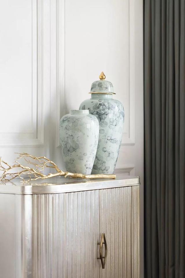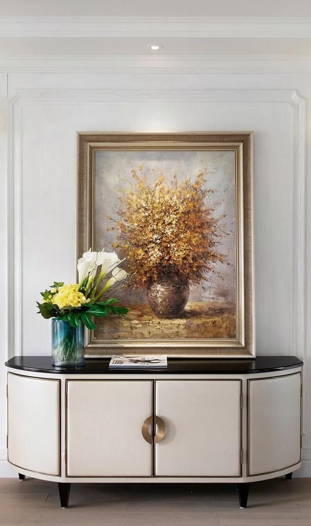 典雅燈飾與餐椅的風(fēng)格形成呼應(yīng),墻面掛畫有著縱深視覺吸引力,空間內(nèi)功能飾物所排布的格局營造出社交宴客融洽怡然的氛圍,寫意出簡繁相諧的美學(xué)力度,細(xì)膩圓融的空間氣質(zhì)凝練于此。