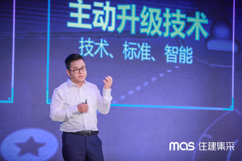 住建集采CEO張賢從宏觀上闡述了住建產(chǎn)業(yè)云生態(tài)的未來(lái),并邀請(qǐng)了團(tuán)隊(duì)成員——住建集采副總裁陳杰、賈楨上臺(tái),正式對(duì)外發(fā)布mas住建集采云平臺(tái),向大家展示住建集采如何實(shí)現(xiàn)云生態(tài)的落地。