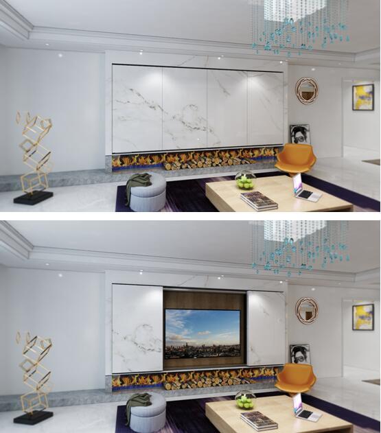 客廳與陽臺的隔斷門,應(yīng)用了天宮5號吊輪極窄3聯(lián)動及對開聯(lián)動產(chǎn)品,引領(lǐng)窄邊框家居風(fēng)潮,實現(xiàn)功能美學(xué)高度結(jié)合的移動推拉效果。電視柜的創(chuàng)意推拉上,安放了航母號智能聯(lián)動門、磁懸浮窄邊框的電視柜,不僅時尚養(yǎng)眼,更憑借不斷飆升的科技感,迎合了新一代主流消費群體的功能性需求。