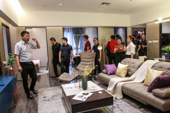 在參觀完亞度家居后,深圳家具行業(yè)協(xié)會游學(xué)團來到富森美拎包入住生活館。