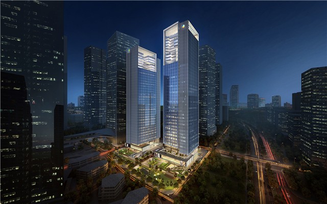 深圳中糧前海亞太區(qū)域總部的雙塔辦公樓燈光設(shè)計異彩紛呈,塔樓的長形體量組成及其垂直線性在輪廓燈光的輔助下得以強化,建筑本身的獨特框架更加突顯,塔樓內(nèi)部的臨窗中庭和建筑上部的天空露臺以效果最大化的視覺中心呈現(xiàn)。外立面的垂直線形光影效果,一如職場人時時繃緊的那根弦:你對自己的更高要求決定了最終你能到達的目的地,真實而有力量。