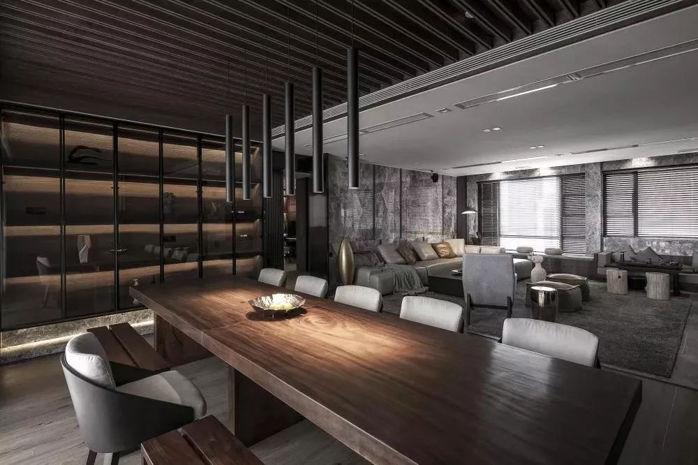 這個(gè)空間我們在運(yùn)用的時(shí)候,更多的是用材質(zhì)在訴說整個(gè)空間,在平面功能布局這一塊,結(jié)合客戶的需求,把它的功能布置好的同時(shí),就是一種材質(zhì)的運(yùn)用在表達(dá)。