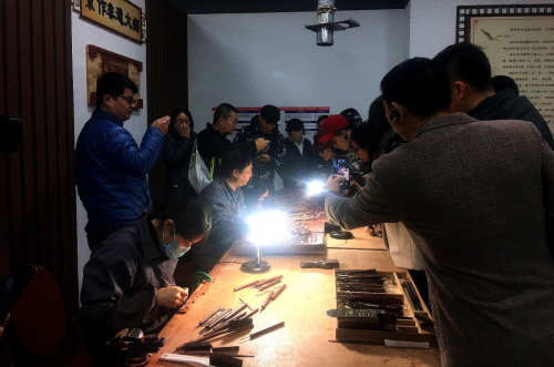京作硬木家具制作技藝匠人王文光師傅,帶領設計師朋友們參觀了龍順成國家級非遺傳承基地。