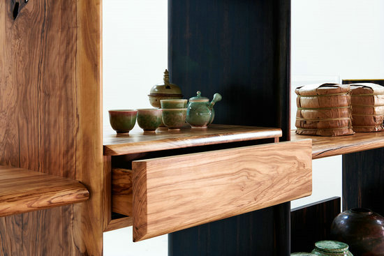 對(duì)MUUSA而言,木材是有生命的,有“毛孔“能呼吸的,為此,他們盡量不用現(xiàn)代工業(yè)化的方式處理木材或摻雜化學(xué)物質(zhì)與其中,而是盡力把材質(zhì)原有自然屬性表現(xiàn)出來,如常用的紅木與橄欖木皆是如此。