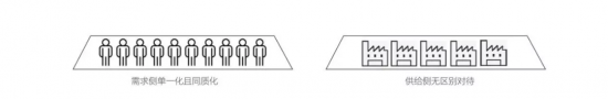 過去我們的消費(fèi)側(cè)需求是單一且同質(zhì)化的,所以作為供給側(cè)的企業(yè)可以無區(qū)別的對(duì)待市場(chǎng),甚至也不需要定位。