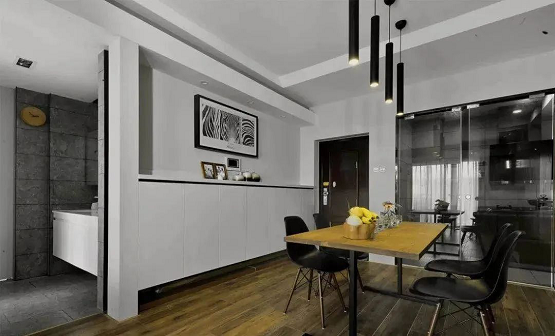 簡約的一字型電視柜除了放在客廳,也同樣適用于臥室、玄關(guān)和廚房,不一定必須要放電視,做一個玄關(guān)邊柜或廚房的櫥柜都合適。柜子的內(nèi)部可放雜物、小件,關(guān)閉后呈現(xiàn)一個整體,沒有一絲多余。