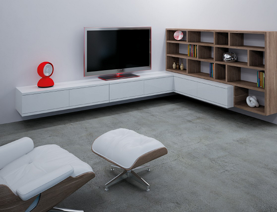 隨著大眾審美水平、消費實力的提升,一字型電視柜并不能滿足越來越多的客廳空間利用效率與顏值需求??蛷d物品的“集成收納”呼聲越來越高,電視柜設(shè)計開始相應(yīng)變革。一字型柜固然簡約實在,但是搭配書柜設(shè)計更為合適。采用柜體分割這樣錯落有致的設(shè)計,實用之余不失美觀。