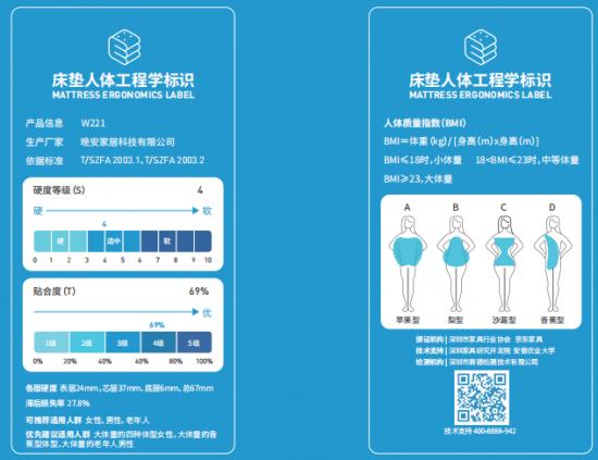晚安產(chǎn)品床墊人體工程學(xué)標(biāo)識