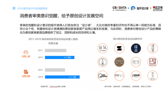 CBNData《報(bào)告》顯示,近兩年來淘系原創(chuàng)家裝家居用品的消費(fèi)人數(shù)實(shí)現(xiàn)了四成增長,消費(fèi)金額更是實(shí)現(xiàn)了七成的飛躍。