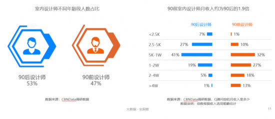 但由于剛出校門,他們的心智閱歷與思維創(chuàng)意仍需打磨與優(yōu)化,和從業(yè)經(jīng)歷更豐富的前輩們相比,個(gè)人收入上仍有較大的差距。CBNData《報(bào)告》發(fā)現(xiàn),90前室內(nèi)設(shè)計(jì)師月收入約為90后的1.9倍,不過這種差距也為年輕從業(yè)者未來獨(dú)當(dāng)一面提供了成長空間。