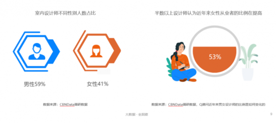 去薪資差異,失衡的男女比也是行業(yè)中的普遍共識(shí),CBNData調(diào)研數(shù)據(jù)顯示,女性設(shè)計(jì)師僅占室內(nèi)設(shè)計(jì)師行業(yè)的41%,但比例正在不斷提升。
