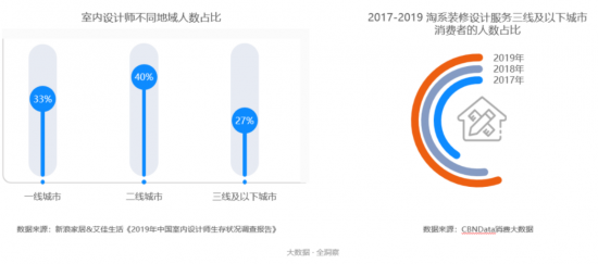 地區(qū)分布方面,伴隨著低線城市的室內(nèi)設(shè)計(jì)需求的涌現(xiàn),北上廣不再是好設(shè)計(jì)的主流買單地。CBNData《報(bào)告》顯示,目前三線及以下城市的室內(nèi)設(shè)計(jì)師在全行業(yè)的占比為27%,且預(yù)計(jì)未來低線城市設(shè)計(jì)師的仍占比會(huì)逐步提升,這將大大改善原本不平衡的地區(qū)分布。