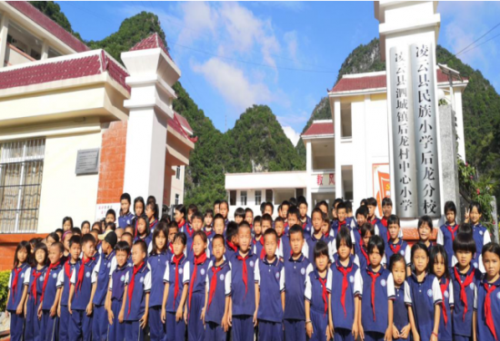 位于廣西百色市的凌云縣泗城鎮(zhèn)后龍村中心小學(xué),就是這樣一個在國家深度貧困村中艱難建立起來的、95%以上學(xué)生為建檔立卡貧困戶的學(xué)校。即使條件艱苦,縣政府及學(xué)校非常重視并積極投入,結(jié)合當(dāng)?shù)氐拿褡逄厣诰蛭幕瘍?nèi)涵、開設(shè)特色民族教育課程。