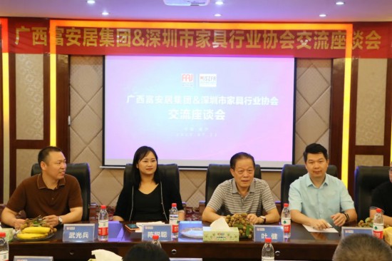 富安居集團高管團隊為侯克鵬主席一行介紹了目前深圳家具品牌在富安居的經營狀況及發(fā)展方向。富安居集團董事葉健先生表示,深圳市家具產品工藝精良,品質卓越,綠色環(huán)保,在南寧市有很大的發(fā)展市場,深圳市眾多家具品牌深受南寧消費者喜愛!