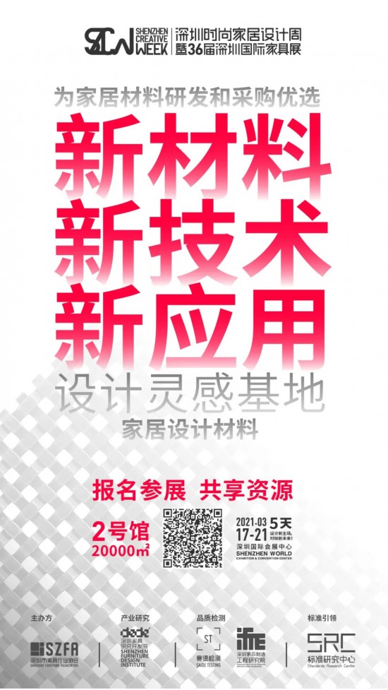 不管是“設計靈感基地·家居設計材料”展,還是“家居供應鏈創(chuàng)技術專業(yè)委員會”,依然由深圳家具研究開發(fā)院、賽德檢測、深圳家具制造工程研究院和標準研究中心等權威機構進行背書,其目的就在于研究高標準,建立優(yōu)選門檻。